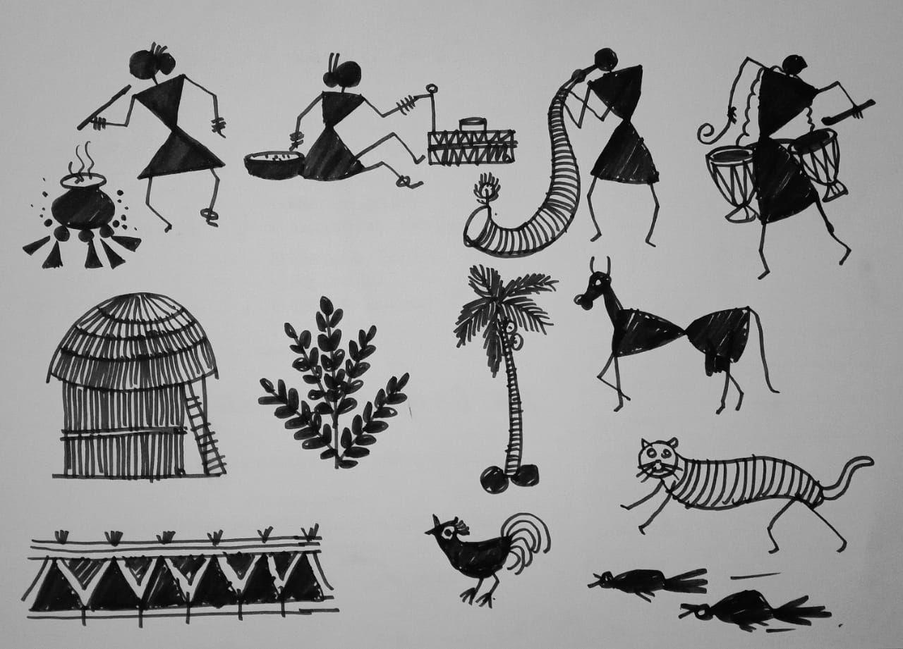 वारली चित्रशैली सराव चित्र